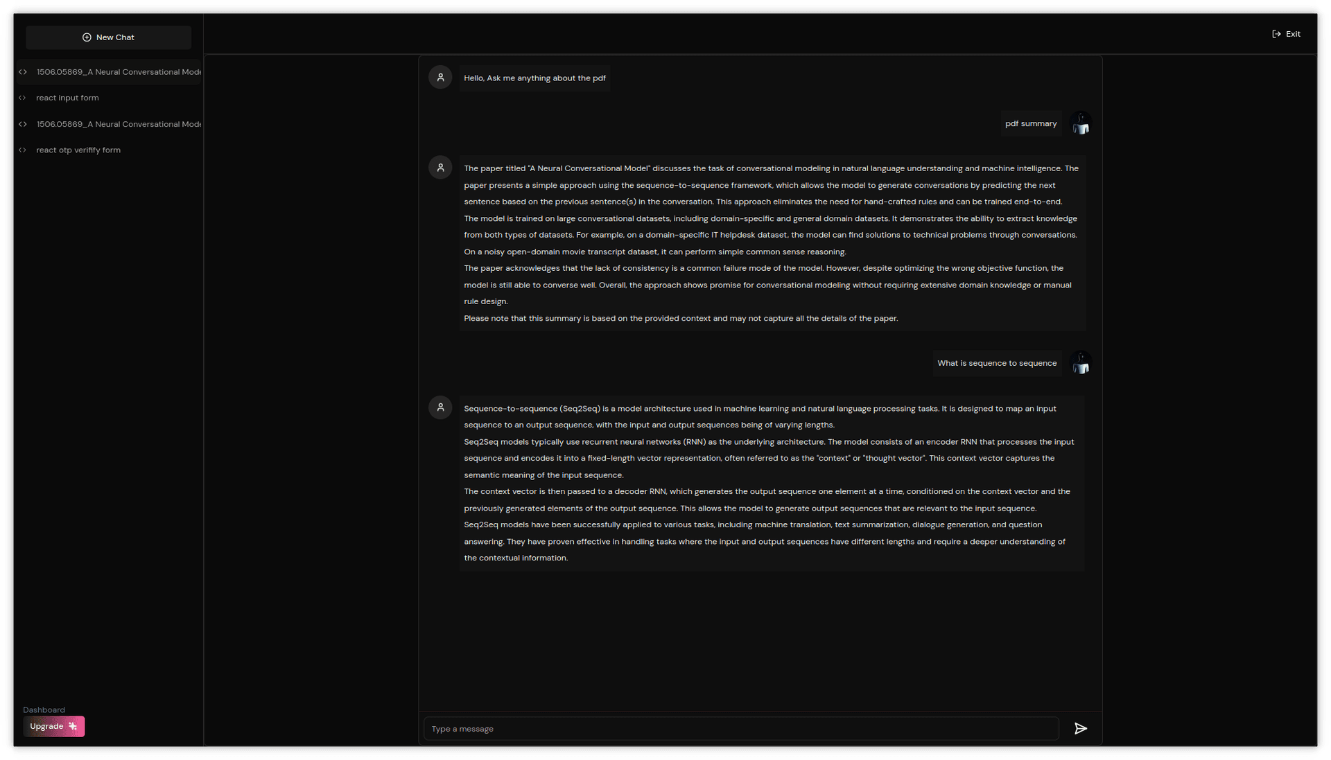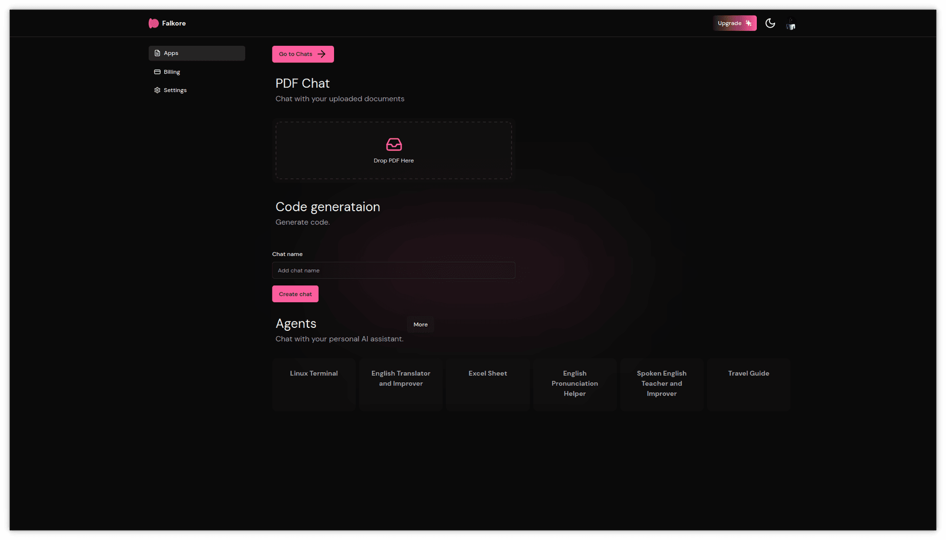 You can create an account with google or github. upload and Chat with your documents. Users can also use code generation to generate code with chatGPT or agents to get domain based answers. All chats are saved and the users can revisit anytime and continue working with them.